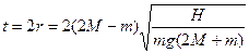 4、简答题 一根轻且不可伸长细线穿过转轴水平固定的光滑定滑轮,线的两端各系一个质量均为M的同样物体,其中一个物体的侧面爬有质量为m的蟑螂。开始维持两物体不动,并且爬有蟑螂的物体比另一物体高H。放开两物体,当它们并排时,蟑螂垂直于所在物的侧面轻轻跳开,并抓住向上运动的第二个物体。求: (1)两物体第一次并排时两物体的速度大小; (2)经过多少时间两物体又并排; (3)带有蟑螂的第二个物体上升的最大高度。