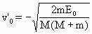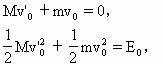mv0=(m+m)v1,v1=