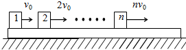 2、计算题 有n个完全相同的物块放在光滑水平面上沿一直线排开,物块间距离均为d.开始物块1以初速度v0向物块2运动,碰撞后黏在一起,又向物块3运动,黏在一起后又向物块4运动……如此进行下去.求: