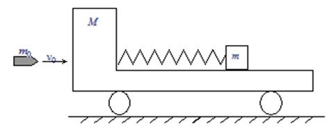 5、计算题 如图所示,在光滑水平轨道上有一小车质量为2m,它下面用长为L的绳系一质量也为2m的小砂袋,系统原来处于静止。今有以水平速度V0水平射来的质量为m的子弹,它射入砂袋后并不穿出(射入时间极短)而与砂袋一起摆动。不计悬线质量,试求: