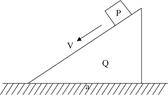 3、选择题 将质量为m1的物块P(可视为质点)从置于光滑水平面上的斜面体Q(质量m2)的顶端由静止释放。由于斜面体各处粗糙程度不同,最后恰好滑到Q的底端与之相对静止。如图所示.已知Q底边长为a,倾角为θ。对于上述过程,由P和Q组成的系统下述说法正确的是(?)