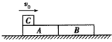 1、计算题 如图所示,在光滑水平面上有两个并排放置的木块A、B,已知mA=0.5kg,mB=0.3 kg。现有质量m0=0.08 kg的小物块C以初速v0=25m/s在A表面沿水平方向向右滑动,由于C与A、B间均有摩擦,C最终停在B上,B、C最后的共同速度v=2.5 m/s。求: