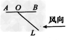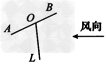 5、选择题  每年春天许多游客前往公园放风筝,会放风筝的人,可使风筝静止在空中,下列的四幅图中,AB代表风筝截面,OL代表风筝线,风向水平,则风筝可能静止的是