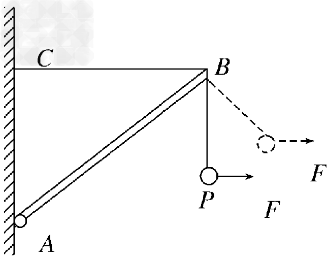 1、选择题  如图所示,轻杆A端用光滑水平铰链装在竖直墙面上,B端用水平绳结在墙C处并吊一重物P,在水平向右的力F缓缓拉起重物P的过程中,杆AB所受压力的变化情况是