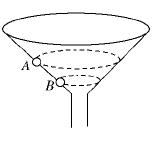 5、选择题 如图所示,固定的锥形漏斗内壁是光滑的,内壁上有两个质量相等的小球A和B,在各自不同的水平面做匀速圆周运动,以下说法正确的是(? )