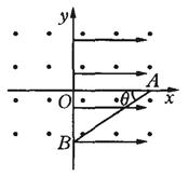 3、计算题 在地面上方的真空室内,存在匀强电场和匀强磁场。已知电场强度和磁感应强度的方向是相同的,电场强度的大小E ="4N/c,B=" 0.15T。今有一个带负电的质点以v = 20m/s的速度在此区域内沿垂直于电场强度方向做匀速直线运动,求此带电质点的电量与质量之比q/m以及磁场的所有可能方向。(g=9.8m/s2)