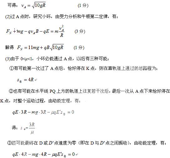 (1)从C到A,洛伦兹力不做功,小环对轨道无压力,也就不受轨道的摩擦力.由动能定理,有: