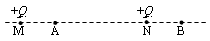 3、选择题 如图所示,在两个等量同种正电荷M、N的连线上有A、B两点,已知MA=NB,MA<NA。下列关于A、B两点电场强度和电势的比较,正确的是