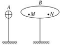 5、选择题 如图所示,A是带正电的球,B为不带电的导体,A、B均放在绝缘支架上,M、N是导体B中的两点。以无限远处为电势零点,当导体B达到静电平衡后,说法错误的是( )