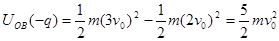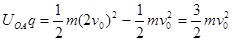 4、选择题 空间存在一匀强电场,有一电荷量为+q、质量为m的粒子从O点以大小为v0的速率射入电场,运动到A点时速率为2v0,OA间距为L.现有另一电量为-q、质量为m的粒子以速率2v0仍从O点射入该电场,运动到B点时速率为3v0.不考虑重力的影响,则