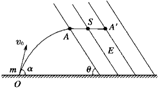 2、简答题 一质量为m、电荷量为q的小球,从O点以和水平方向成α角的初速度v0抛出,当达到最高点A时,恰进入一匀强电场中,如图.经过一段时间后,小球从A点沿水平直线运动到与A相距为S的A′点后又折返回到A点,紧接着沿原来斜上抛运动的轨迹逆方向运动又落回原抛出点.求