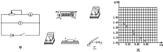 1、简答题 在用电流表和电压表测干电池的电动势和内电阻的实验中,所用电流表和电压表的内阻分别为0.1Ω和1kΩ,如图(甲)和(乙)分别为实验原理图及所需的实验仪器图.