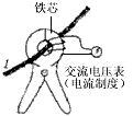 1、填空题 钳型表的工作原理如图所示。当通有交流电的导线从环形铁芯的中间穿过时,与绕在铁芯上的线圈相连的电表指针会发生偏转。由于通过环形铁芯的磁通量与导线中的电流成正比,所以通过偏转角度的大小可以测量导线中的电流。日常所用交流电的频率在中国和英国分别为50Hz和60Hz。现用一钳型电流表在中国测量某一电流,电表读数为10A;若用同一电表在英国测量同样大小的电流,则读数将是____________A。若此表在中国的测量值是准确的,且量程为30A;为使其在英国的测量值变为准确,应重新将其量程标定为____________A。