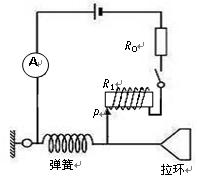 ,电源电动势E=3V,内阻不计。理想电流表的量程为0~100mA。当拉环不受拉力时,触头P刚好不与电阻