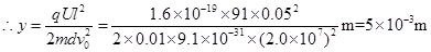 ,质量m=9.1×10-31kg,沿水平方向以速度v0=2.0×107 m/s,从两板中间射入,并从电场的右端射出,如图所示,
