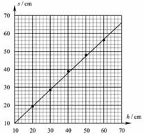 | h/cm | 20.0 | 30.0 | 40.0 | 50.0 | 60.0 s/cm 19.5 28.5 39.0 48.0 56.5 |