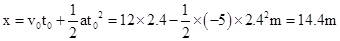 本题解析:答案应选BD 析:先求出汽车制动后经过多长时间停止,汽车停止后不再运动,然后根据速度时间公式v=v0+at求出汽车的速度,根据x=v0t+ at2求出汽车的位移. 解答:解:A、汽车制动到停止的时间t0= =2.4s.所以经过3s后,汽车已停止,所以速度为0.故A错误,B正确. 经过2.4s汽车停止,所以3s内的位移等于2.4s内的位移, 则 .故C错误,D正确. 故选BD.