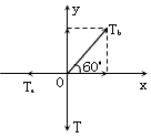 4、计算题 如图所示,重100N的物体,用轻质细绳a和b悬挂,绳a水平、绳b与水平方向成60°角,试回答下列问题:
