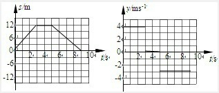 3、填空题 一玩具车以4m/s的速度向右运动了3s后遇到一障碍物,花了2s在原地掉头,然后沿原路匀速向左返回,再过4s后恰回到原出发点.以向右为正方向,试画出玩具小车在这段时间内的s-t图和v-t图.