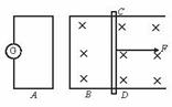 1、选择题 如图4所示,A线圈接一灵敏电流表G,B导轨放在匀强磁场中,B导轨的电阻不计.具有一定电阻的导体棒CD在恒力作用下由静止开始向右运动,B导轨足够长,则通过电流表中的电流大小和方向是:?