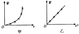 (4)甲、乙两位同学的实验操作均正确。甲同学根据实验数据作出了功和速度的关系图线,即W-v图,如图甲,并由此图线得出“功与速度的平方一定成正比”的结论。乙同学根据实验数据作出了功与速度平方的关系图线,即W-v2图,如图乙,并由此也得出“功与速度的平方一定成正比”的结论,关于甲、乙两位同学的分析,你认为