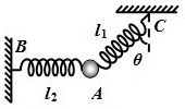 3、选择题 如图所示,质量为m的物体A系于两根轻弹簧l1、l2上,l1的一端悬挂在天花板上C点,与竖直方向夹角为θ,l2水平拉直,左端固定于墙上B点,物体处于静止状态.则( )