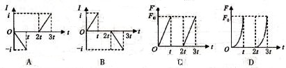 。t=0时刻,E点处于磁场边界,CD边与磁场边界平行。在外力F的作用下线框沿垂直于磁场区域边界的方向匀速穿过磁场区域。从E点进入磁场到CD边恰好离开磁场的过程中,线框中感应电流I(以逆时针方向的感应电流为正)、外力F(水平向右为正方向)随时间变化的图象(图象中的