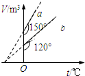 5、填空题 如图所示是a、b两部分气体的等压图象,由图示条件可知,当t=0℃时的气体a的体积与气体b的体积之比Va:Vb是______;若
