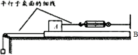 5、简答题 为了测量两张纸之间的动摩擦因数,某同学设计了一个实验:如图所示,在木块A和板B上贴上待测的纸,B木板水平固定,砂桶通过细线与木块A相连,调节砂桶中砂的多少,使木块A匀速向左运动.测出砂桶和砂的总质量m,以及贴纸木块A的质量M,则两纸间的动摩擦因数μ=