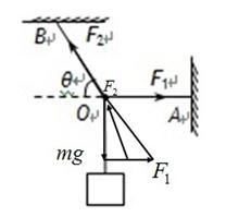 5、选择题 如图所示,重物的质量为m,轻细绳AO和BO的A端、B端是固定的。平衡时AO是水平的,BO与水平方向的夹角为。AO的拉力F1,BO的拉力F2。将作用点B沿水平方向向右缓慢移动, O点位置不动条件下,点B移动过程中(?)