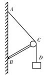 4、选择题 如图所示,轻杆BC一端用铰链固定于墙上,另一端有一小滑轮C,重物系一绳经C固定在墙上的A点,滑轮与绳的质量及摩擦均不计?若将绳一端从A点沿墙稍向下移,系统再次平衡后,则