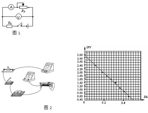 (3)根据闭合电路欧姆定律U=E-Ir得,当I=0时,U=E,则U-I图象的纵轴截距等于电源的电动势E,图象的斜率大小等于电源的内阻r与R0之和,则由图读出电动势E=2.90V,内阻r=△U△I-R0=2.90-0.400.5Ω-4Ω=1.00Ω.