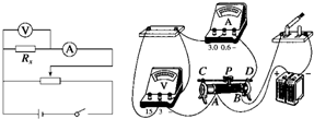 (4)为使通过待测金属导线的电流能在0~0.5A范围内改变,变阻器必须接成分压式电路,实验原理电路图如图,连成实验电路如图.