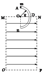 、内壁光滑、内径很小的绝缘半圆管ADB固定在竖直平面内,直径AB垂直于水平虚线MN,圆心O为MN的中点,半圆管的一半处于电场中。一带正电的小球从半圆管的A点由静止开始滑入管内,小球可视为质点,质量为