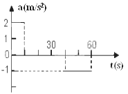 3、选择题 汽车由静止开始在平直的公路上行驶,0 s至60s内汽车的加速度随时间变化的图线如图所示。求: