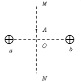 ![]() 2、选择题 两个带等量正电荷的小球(可视为点电荷)固定在图中a、b两点,MN为ab连线的中垂线,交直线ab于O点,A为MN上的一点。取无限远处的电势为零。一带负电的试探电荷q,仅在静电力作用下运动,则 |