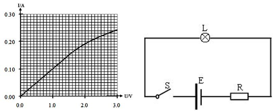 ③实验得到小灯泡的伏安特性曲线如图所示。如果将这个小灯泡接到如图所示的电路中,其中R(规格:“3V 0.66W”)为电热丝,且正常工作,此时小灯泡的电阻是 Ω。(保留两位有效数字)
