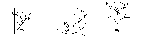 2、实验题 画出图中所示各静止物体所受重力和弹力(各接触面均光滑,O点为球心,P点为重心)