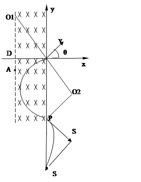 故,粒子第一次进入磁场的运动轨迹的圆心即为O1点,圆孤轨迹所对的圆心角为45?,且O1A为圆弧的半径R。