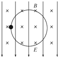 5、选择题 如图6所示,在匀强电场和匀强磁场共存的区域内,电场的场强为E,方向竖直向下,磁场的磁感应强度为B,方向垂直于纸面向里,一质量为m的带电粒子,在场区内的一竖直平面内做匀速圆周运动,则可判断该带电粒子( )
