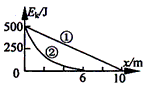 5、填空题 自动充电式电动车的前轮装有发电机,发电机与蓄电池连接。骑车者用力蹬车或电动车自动滑行时,发电机向蓄电池充电,将其他形式的能转化成电能储存起来。现使车以500J的初动能在粗糙的水平路面上自由滑行,第一次关闭自充电装置,其动能随位移变化关系如图线①所示;第二次启动自充电装置,其动能随位移变化关系如图线②所示,则第二次向蓄电池所充的电能是___________J。