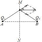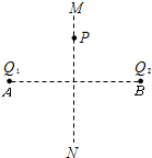 ![]() 参考答案:Q是带负电的点电荷,则电场线方向由P1→P2,顺着电场线方向,电势降低,则φ1>φ2. 本题解析: 本题难度:简单 3、填空题 如图所示为一个正电荷的电场.A、B是电场中的两点.若将q=5×10-8C的负电荷置于A点,所受的电场力为2×10-4N,则A点的场强大小为______N/C,方向指向______(?填“左”或“右”);若将电荷q从A点移走,则该点的电场强度大小是______N/C. 参考答案:A点的电场强度大小E=Fq=4×102N/C,方向水平向右. 本题解析: 本题难度:一般 4、选择题 如图所示,真空中的A、B两点上固定着两个等量异号的点电荷Q1、Q2,Q1带正电,Q2带负电.MN是AB连线的中垂线,中垂线上P点的电场强度方向是( ) |