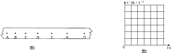 4、简答题 某同学在做《探究小车速度随时间变化的规律》实验时,用打点计时器记录了被小车拖动的纸带的运动情况,如图1所示,在纸带上确定出A、B、C、D、E、F、G共7个计数点.每两个计数点之间的时间间隔为0.10s.根据纸带上各个计数点间的距离,每隔0.10s测一次速度,计算出打下各计数点时小车的瞬时速度,如表中所示