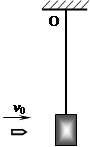 2、计算题 (10分)如图的砂袋用轻绳悬于O点,开始时砂袋处于静止状态,此后用弹丸以水平速度击中砂袋后均未穿出。第一次弹丸的速度为v0,水平向右打入砂袋后,砂袋向右摆动,轻绳与竖直方向所成的最大夹角为θ(θ<90°),当砂袋第一次返回图示位置时,第二粒弹丸以另一速度v又水平向右打入砂袋,使砂袋向右摆动且轻绳与竖直方向的最大夹角仍为θ。若弹丸质量均为m,砂袋质量为4m,弹丸和砂袋形状大小及空气阻力均忽略不计。求:两粒弹丸的水平速度之比