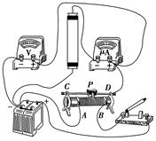 2、实验题 某同学设计了一个监测河水电阻率的实验.他在一根均匀的长玻璃管两端装上两个橡胶塞和铂电极,如图甲所示,两电极相距L=0.314 m,其间充满待测的河水.安装前他用如图乙所示的游标卡尺测量玻璃管的内径,结果如图丙所示.他还选用了以下仪器: