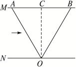 5、选择题 如图所示,两侧河岸M、N间是流速稳定的小河,两侧河岸平行,水流速度方向向右.两小船同时从O点出发,岸上的观察者看到一小船沿OA运动,渡河时间为ta,一小船沿OB运动,渡河时间为tb,已知OA和OB关于直线OC对称,两小船在静水中的速度大小相等,则(?)