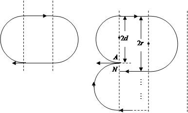粒子沿半径为d的半圆运动至Ⅱ区,经电场加速后,在Ⅲ区又经半圆运动返回电场减速到边界线的A点,此时设AN=x,则: