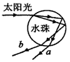 ![]() 4、选择题 如图所示为太阳光射到空气中小水珠时的部分光路图,其中a、b为其中的两种单色光。以下说法正确的是 5、简答题 如图所示,是一种折射率n=1.5的棱镜,用于某种光学仪器中,现有一束光线沿MN方向射到棱镜的AB面上,入射角的大小满足sinθ1=0.75,求: |