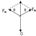 4、选择题 如图所示,轻绳MO和NO共同吊起质量为m的重物.MO与NO垂直,MO与竖直方向的夹角θ=30°.已知重力加速度为g.则( )