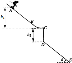 3、简答题 山地滑雪是人们喜爱的一项体育运动.一滑雪坡由斜面AB和圆弧面BC组成,BC圆弧面和斜面相切于B,与水平面相切于C,如图所示,AC竖直高度差hl=9.8m,竖直台阶CD高度差为h2=5m,台阶底端与倾角为37°斜坡DE相连.运动员连同滑雪装备总质量为80kg,从A点由静止滑下通过C点后飞落到DE上(不计空气阻力和轨道的摩擦阻力,g取10m/s2,sin37°=0.6,cos37°=0.8).